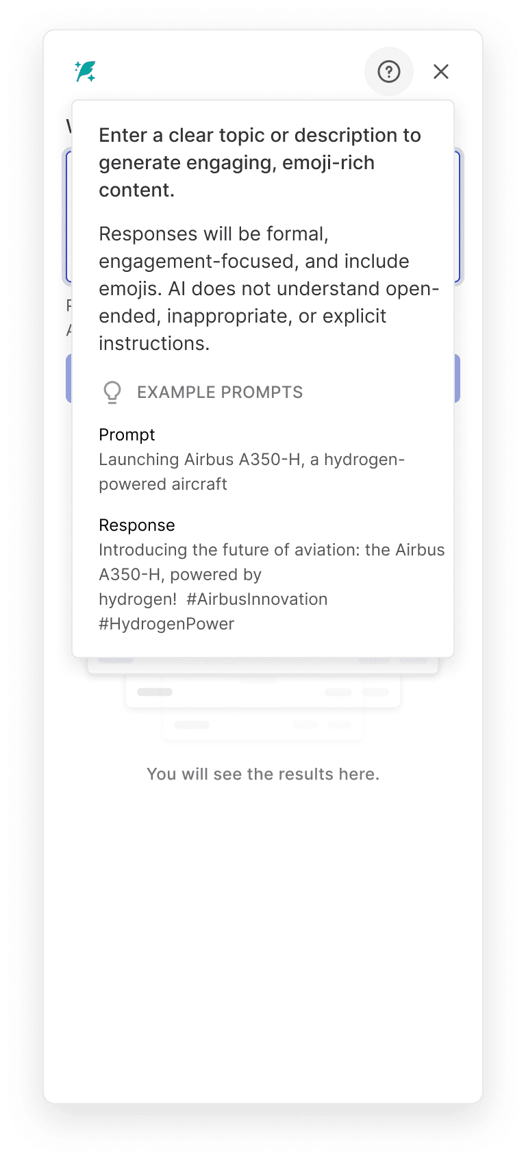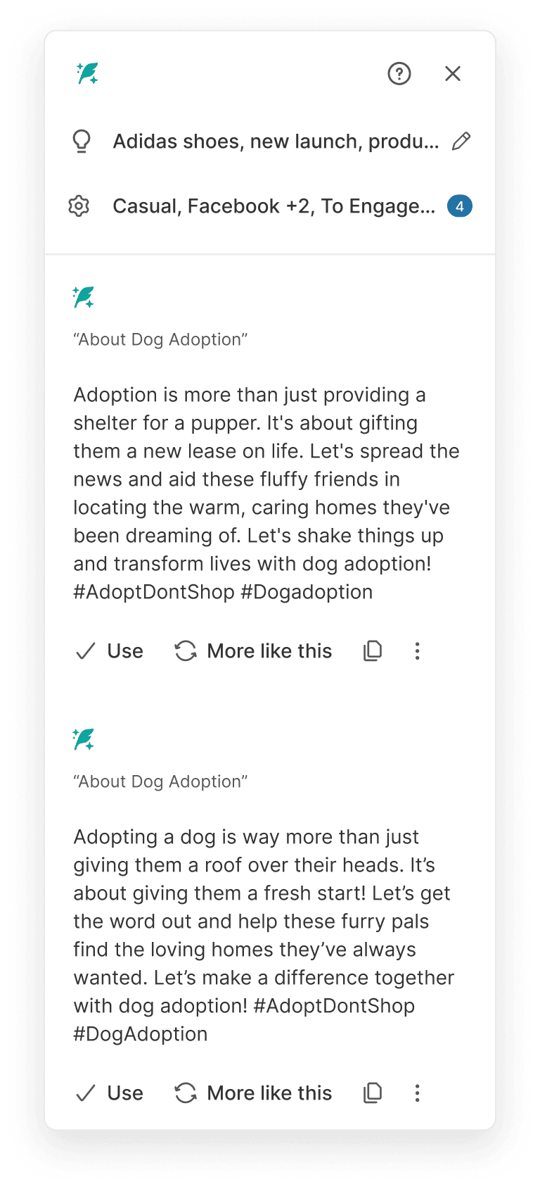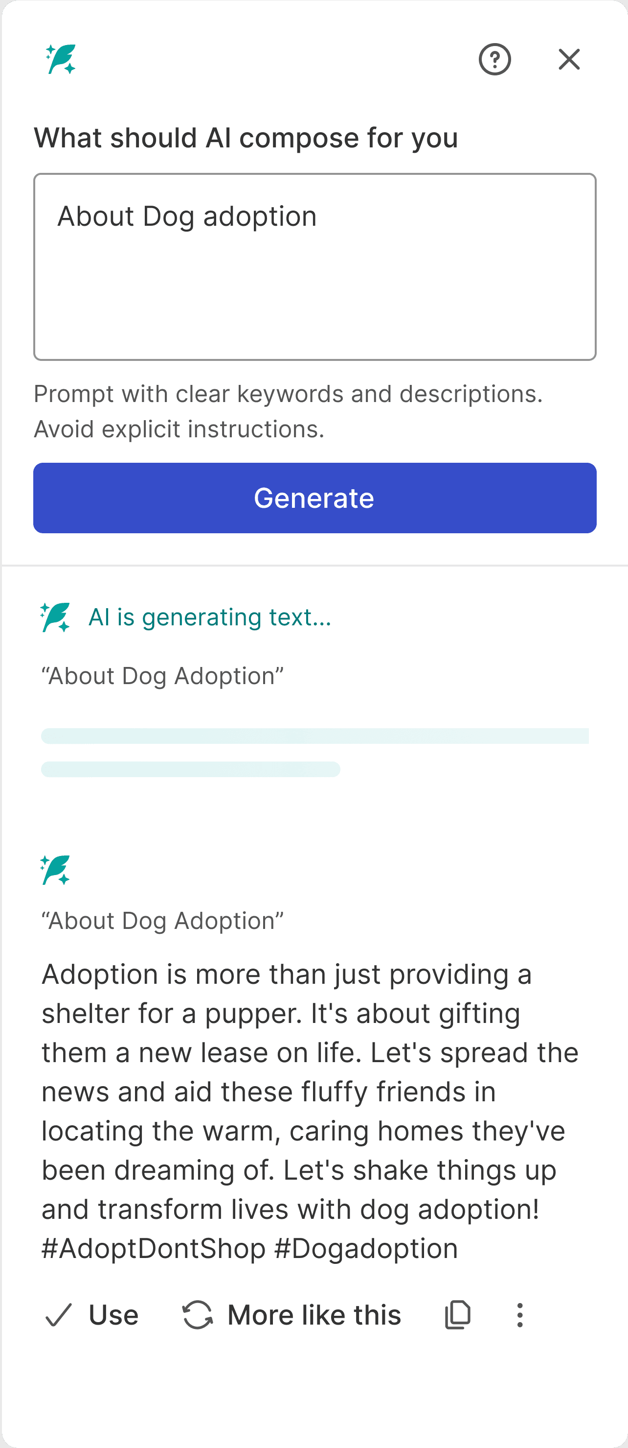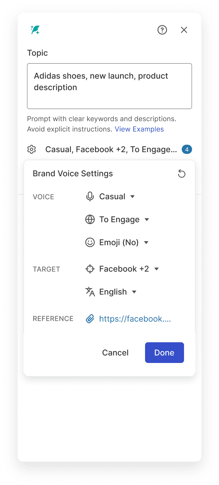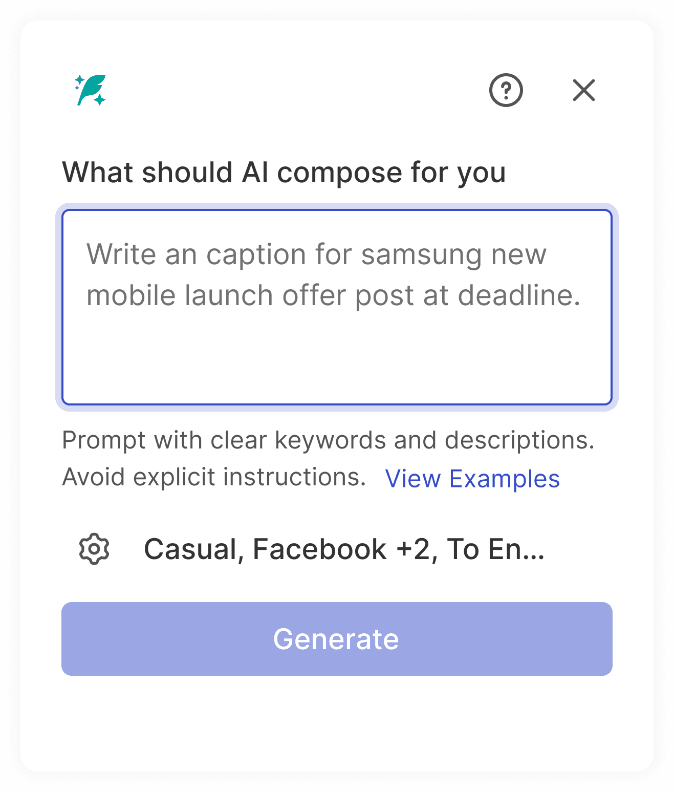 Straight forward text input to input the post topic and phrases about the product.