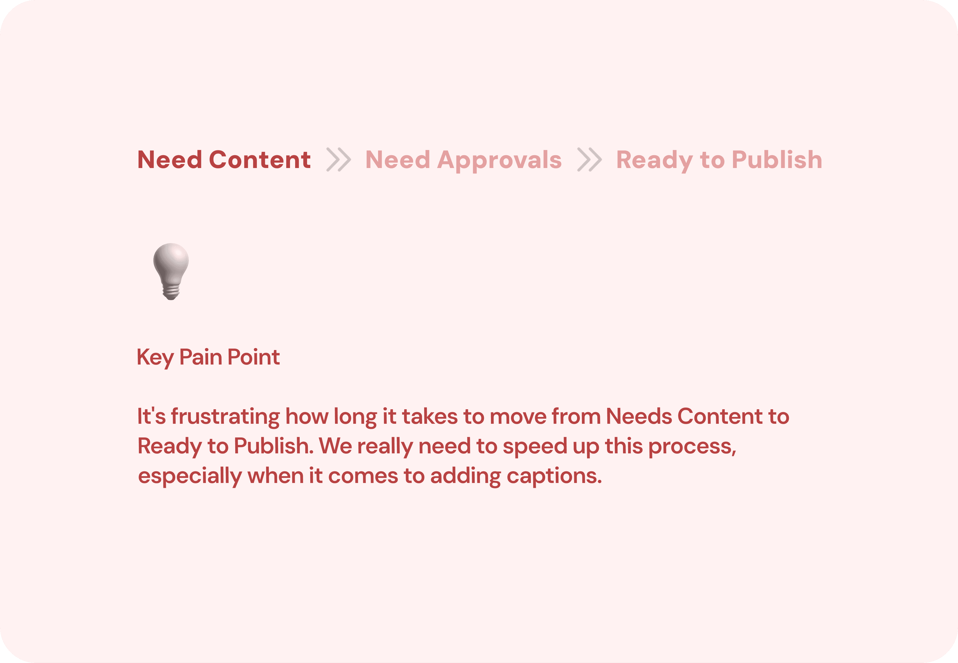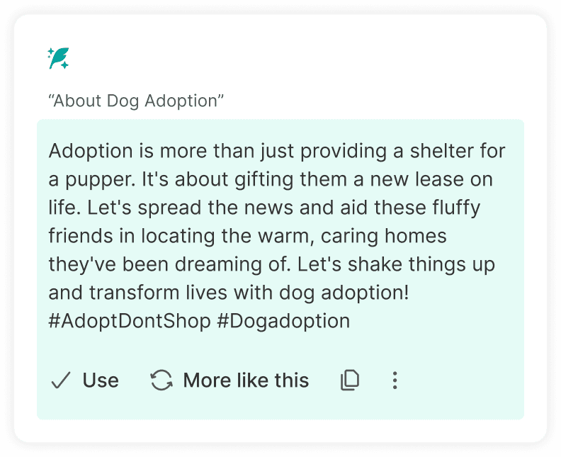 Social media managers told us again and again: coming up with the first line eats up the most time. They're handling multiple campaigns, switching tones across platforms, and still trying to keep everything on-brand. Most were bouncing between tools, copy-pasting from AI apps, or digging up old docs just to get that one perfect line. These are folks who have the purchase power with their org.