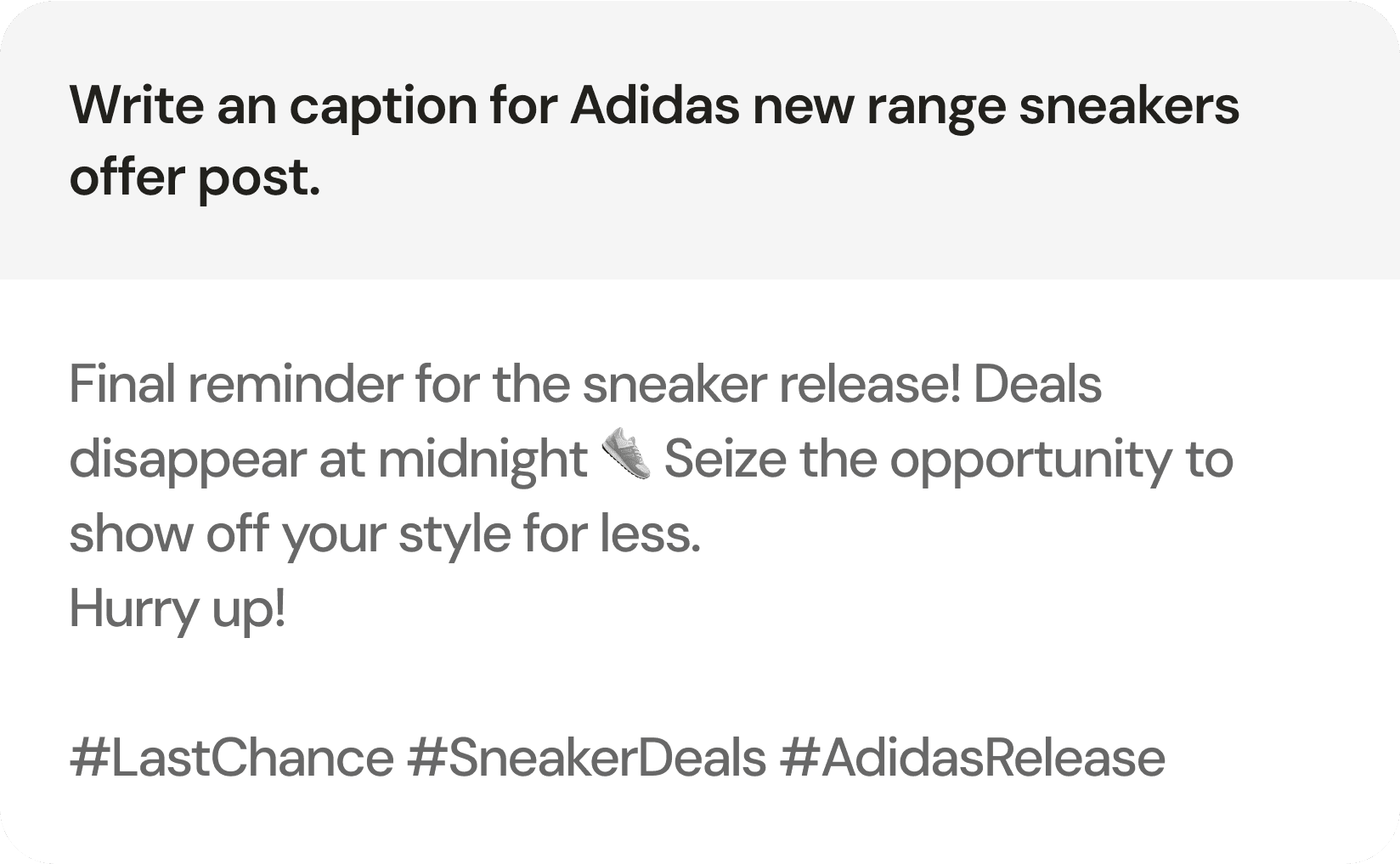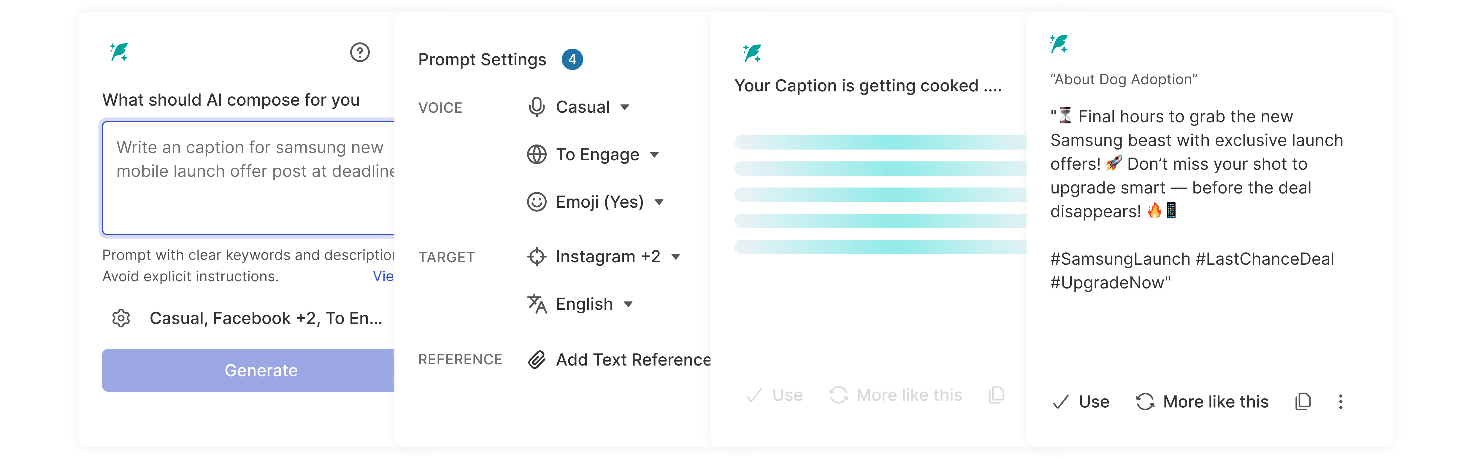 We Explored several avenues, Templates and fill-in-the-blank captions felt too rigid—they didn’t give users the flexibility to express brand tone or adapt to different platforms in the moment.