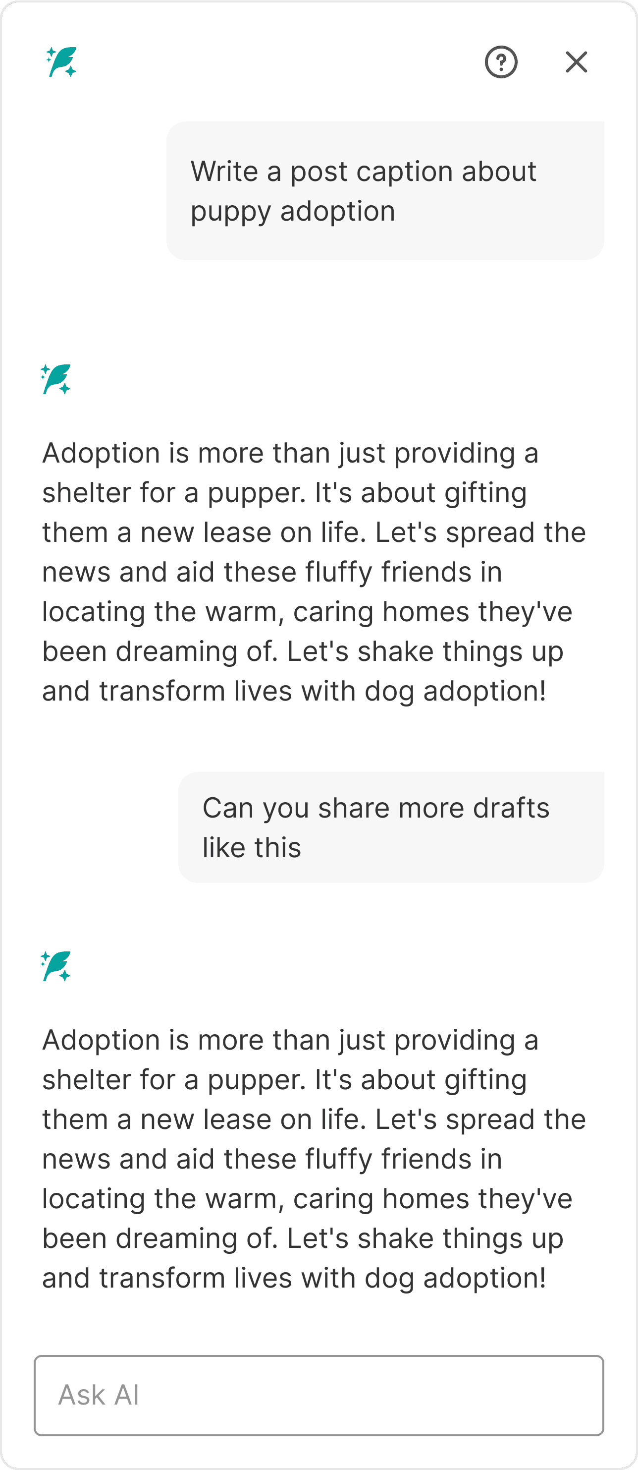 Each AI response was presented as a card—clean, editable, and regenerate-able.